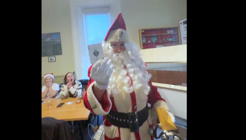 Santa Claus opens Envelope No. 30 which revealed the Ace of Spades, meaning Chris Weaver of Durham won the jackpot of almost $60,000 in the Kincardine Community Catch the Ace progressive lottery, Wednesday afternoon