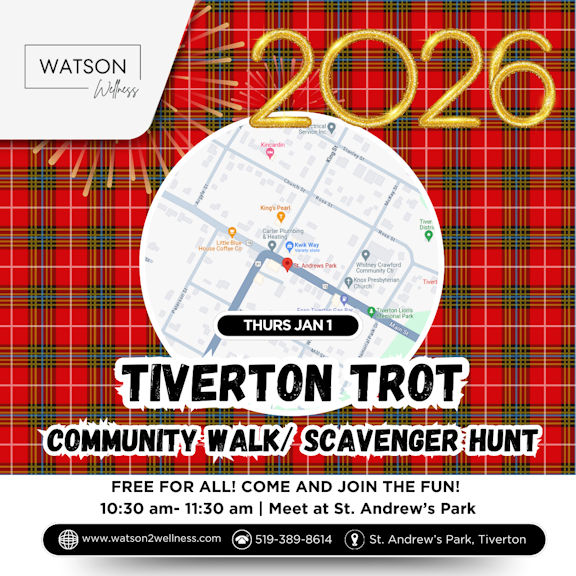 The Tiverton Trot community walk and scavenger hunt is set to run Jan. 1, 2026, from 10:30-11:30 a.m., beginning at St. Andrews Park in Tiverton.
