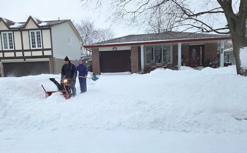 Ken (left) and Linda Stanley of Kincardine work together to clear their driveway on New Year's Day