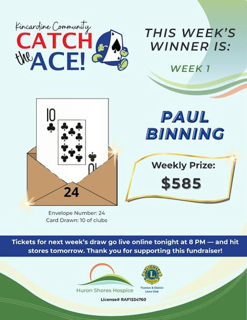 First Kincardine Community Catch the Ace winner takes home $585