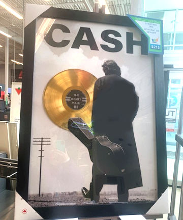 This is a typical Johnny Cash picture, with him dressed in a long, black coat and carrying his guitar case, walking a lonely road. This depicts the essence of the emotional journey that Johnny Cash undertook during his career, ending with the Gold Records.