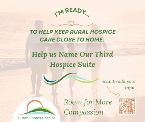 Huron Shores Hospice is looking for a name that reflects comfort, connection, and the deep compassion that defines hospice care, similar to the other two suites, Tranquility and Trillium. Whether your inspiration comes from a personal experience, a loved one, nature, or a feeling you want others to carry with them, your voice matters.