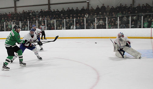Hamilton stopped 26 of 30 shots for the Wolves, while the Junior C Hanover Barons' goalie Derek Hartley stopped 32 of 34 shots in his surprising debut for Minto after regular starter Jonathan Reinhart could not play following a collision in Friday night's game.