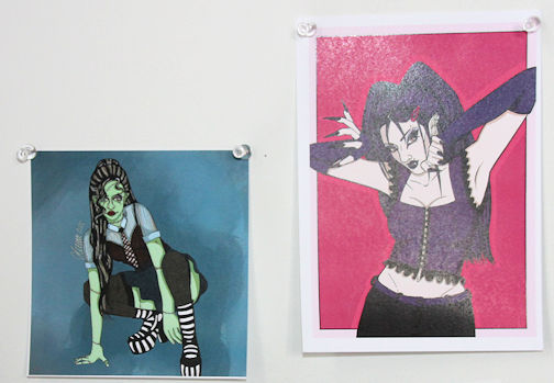 The prints are a series from a show she used to watch, with such titles as "Operetta Phantom," "Draculaura" and "Frankie Stein." They combine fine art with style and fashion.