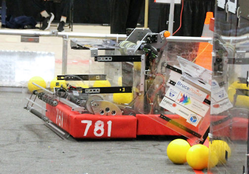 FRC Team 781's robot competes in qualifying matches at the Ontario District competition in Windsor on the weekend