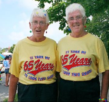 Sherry Atkins (on the left, in photo at right) of Kincardine, and her twin sister, Terry MacKenzie of Kintail, join the fun at the Kincardine reunion parade