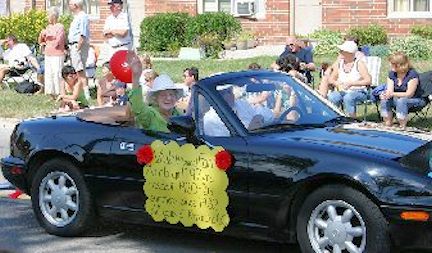 Violet Farr waves from the car, driven by her son, Michael, during the Kincardine reunion parade