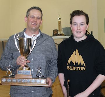 The John Hawrylyshyn award went to Troy Snobelen, Julie Twolan, Bill Rutledge, Mark Vollmer and Kenny Thompson of the Peewee Rep. team. The award recognizes the coaching staff that exhibits outstanding dedication, commitment, sportsmanship and positive contributions to minor hockey. This team's final playoff game in Ripley against Lucknow was end-to-end action. The parking lot was full, and the arena was standing-room only. And the fans were thrilled as the Ripley Novices won in overtime.