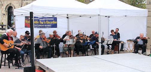 The weather was cool but clear for the fifth annual World Fiddle Day held Saturday afternoon, May 18, in downtown Kincardine.