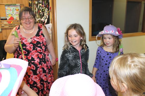 The mothers, grandmothers, aunts and friends were introduced by the Guiding members who then showed them to their seats and presented them with gifts they had made.