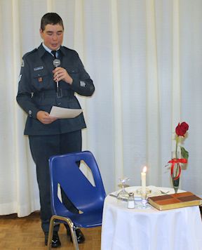 Lisa Moore, chairperson of the sponsorship committee, welcomed everyone and then Air Cadet Alex Pierce pointed out the Table for Our Fallen Comrades which was located beside the head table.