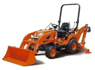 The 2015 orange Kubota (right) is a combination tractor/loader/backhoe, Model BX25, valued at $20,000.