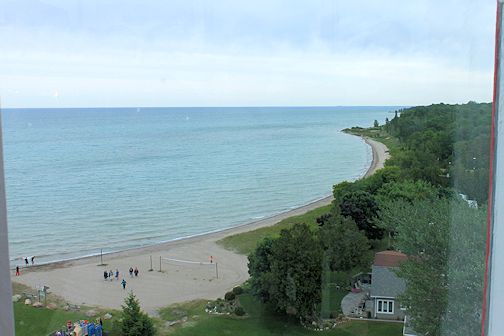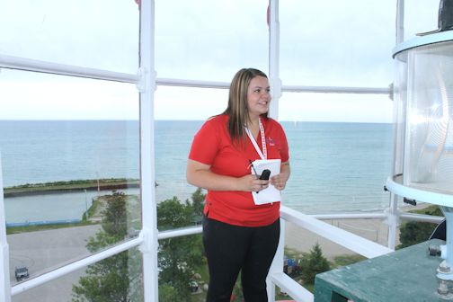 During the climb, tour guide Emily Simpson pointed out that the contractors replaced 437 of the 1,400 stones in the tower. Built between 1855-1859, the limestone tower is 87 feet high to the end of the stone, 93 feet to the top of the light, and 115 feet to the top of the lightning rod.