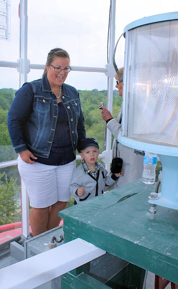 At the top of the lighthouse, inside the 12-sided lantern, you can see for 15 miles in all directions. The navigational light was last changed in 2005, said Simpson.