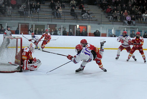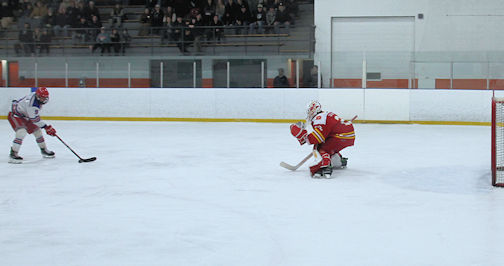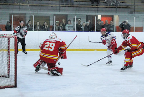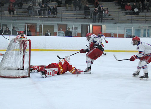 The same thing happened in the third period, as Chad Lawrence put the Bulldogs ahead, 3-2, scoring from Jordan Beisel and Moulton, but minutes later, Hanover had tied it up once more, pushing the game into overtime.