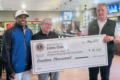 The Ripley and District Lions have raised $14,000 for Huron Shores Hospice and the Kincardine and Community Health Care Foundation, through the annual Golf for a Cause tournament, held Friday, at Ainsdale Golf Course.