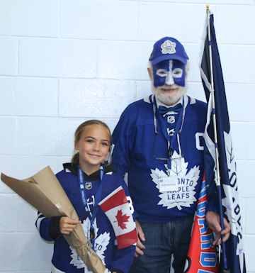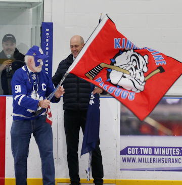 As usual, Davidson had his face painted blue-and-white, was sporting a Maple Leafs hat and jersey, and waving flags for both the Leafs and the Bulldogs, demonstrating his enthusiasm for the game of hockey, the Municipality of Kincardine, and his beloved Davidson Centre. Joining him, for the opening ceremony, were Huron-Bruce MP Ben Lobb, MPP Lisa Thompson and Kincardine mayor Kenneth Craig.