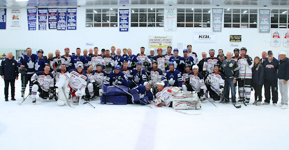 The game went for two 20-minute periods. During the intermission, activities included a shoot-out with the Leafs players, a draw for a Morgan Rielly jersey, and the Kincardine Tykes had a chance to skate with the Leafs alumni team.