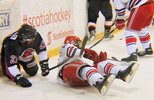 Kincardine fell behind, 3-0, but managed to tie things at 4-4 on a goal by Eric Langridge late in the third period. Also scoring for the 'Dogs were Shawn Moore with a goal and an assist; Keegan Angel and Derrick Bernath with a goal each, and Tyler Fregona with one assist, and Gerrit Satosek with two.