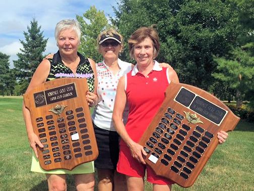 Denise Tighe (right) wins the ladies and senior ladies club championship; with Wendy Gardner (left) and Kathy Mackay; photos by Ainsdale Golf Course