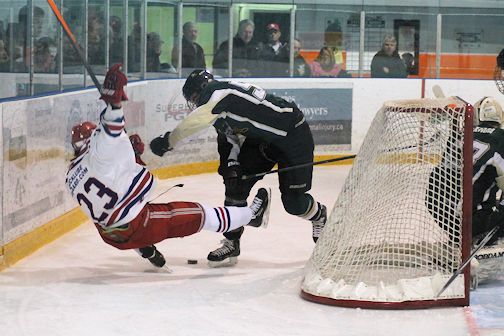 The Pats jumped out to a 2-0 lead in the first period, but a pair of Kincardine goals 15 seconds apart tied things up at 2-2, heading into the second period. Sam Feagan opened the scoring for the 'Dogs on the powerplay at the 17:56 mark with Labrosse credited with the lone assist, followed 15 seconds later when Wiejak finished off a great play from Morrison and Shawn Moore.