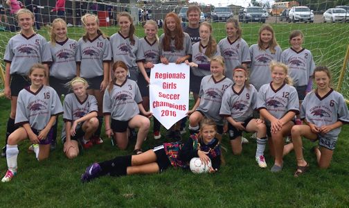 The Ripley Ravens girls soccer team includes, in back, Lily Egberts (left), Halle Armstrong, Tegan Vander Hoek, Sadie Pollock, Allison Pope, Desirae MacLennan, coach Dave Quinn, Megan Hirst, Abigail MacDonald, Emerson Priboj, Natasha McDonell; in front, Mercedes McBride (left), Hannah Cassidy, Hannah Gallant, Kate Leppington, Stacey Gibson, Eve Snobelen, Hannah MacDonald; and lying in front, Kenzie Fry
