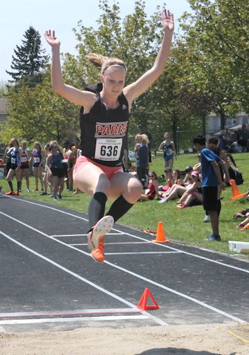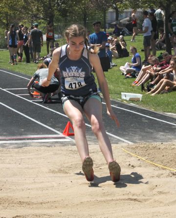 Madelyn Eybergen of Kincardine District Secondary School had a great performance at the CWOSSA track and field championships, held May 17-18, at the Davidson Centre, Kincardine.