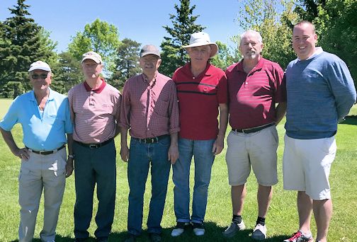 Ainsdale owner Charles Candler (right) stands with the senior men's team whose member, Jim Martin, scored a hole-in-one, back in June; from left, are Helmuth Beraro, Ken Gannett, Jim Martin, Wayne Morrow and Ken Mitchell; photo courtesy of Ainsdale Golf Course