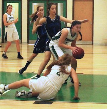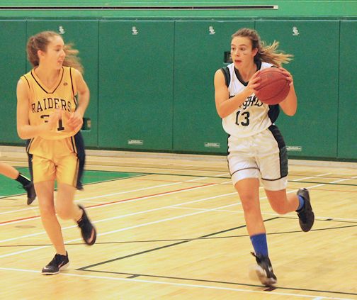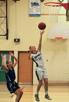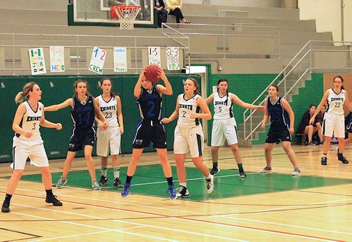 KDSS picked up the pace in the second half, rousting Wellington Heights and turning the game around, on a three-pointer by Ariel Luinstra at the start of the third quarter. By the end of the game, the seniors had won, 44-24, advancing to the gold-medal game against Woodland Christian High School of Breslau.
