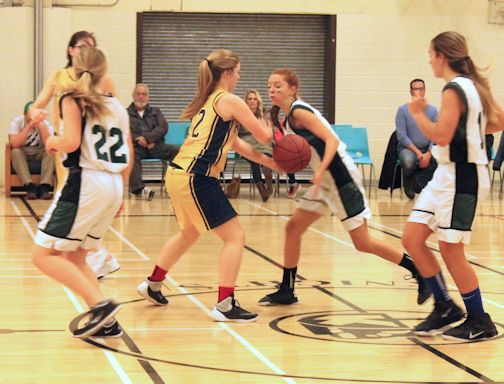 The seniors had a slow start to their semi-final game against Wellington Heights Secondary School of Mount Forest, Friday afternoon. The bleachers were packed and noisy as the girls ended half-time down 12-9.