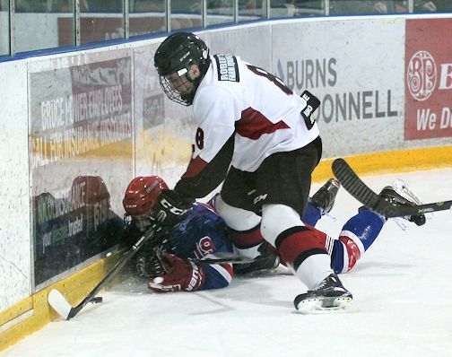 Kincardine went ahead in the third, on a goal by Trevor Donaldson, assisted by Tyler Sutter, but minutes later, Walkerton had the tying goal again. Regulation time ended 3-3, and with no scoring in the overtime period, that's how the game ended.