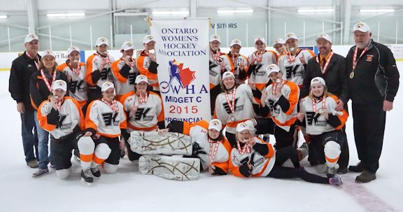 The Ford girls had a memorable finish to the season, and the coaches were pleased with how well they played this weekend, despite several hiccups. Their one and only goalie came down with a serious illness just prior to the provincials, so the head coach was digging through the Ontario Women's Hockey Association (OWHA) rule book for a solution. Fortunately, the Owen Sound "C" team's goalie was able to compete in the weekend tournament.